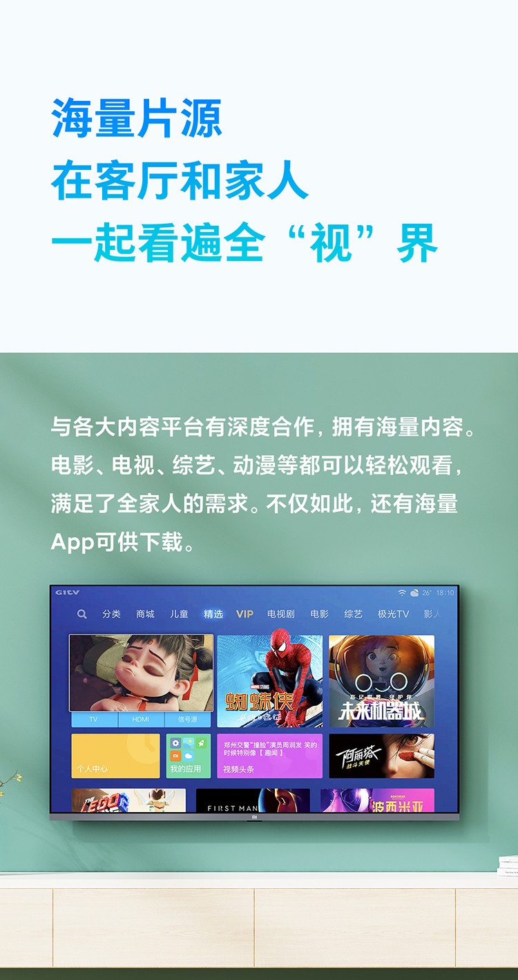 小米テレビ43レンティーフル1 GB+8 GBネトワルククリービ43 Kフルハムビアンビ标准版:アメテル43