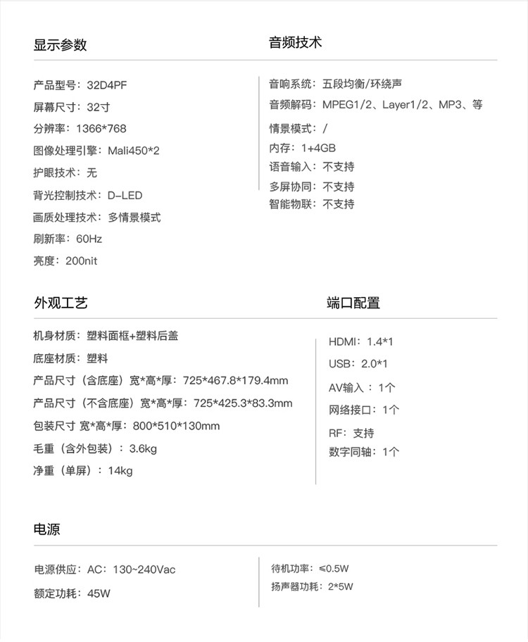 长虹32 D 4 PF 32インチマネットクのフルスクリーン教育テレビ4 K复号Blu-rayハービィ携帯帯屏蔽内容パネル液晶テレビ