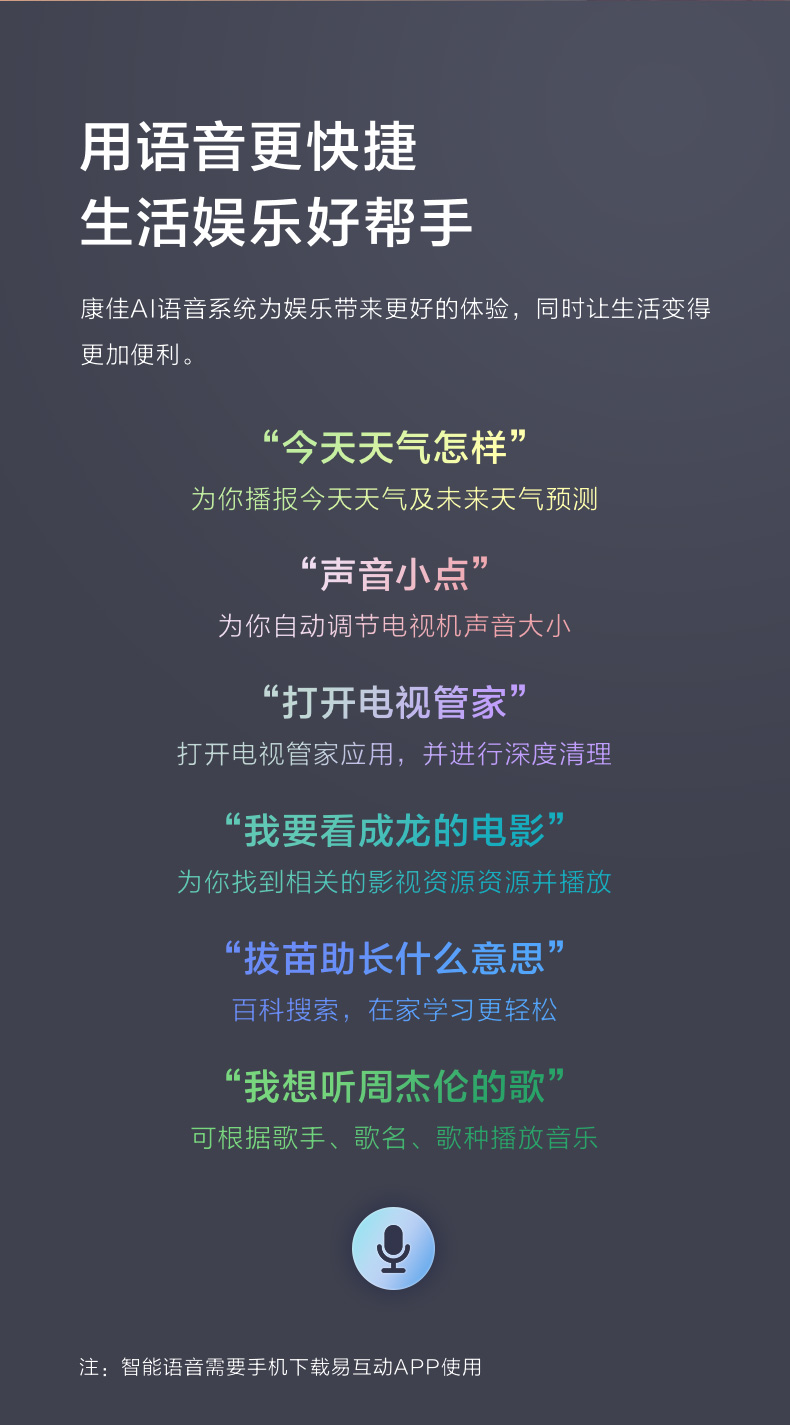 发货很快,送货上门,电视机很轻,屏幕比较大,也很清晰,音质也不错,话说真的挺大的,因为家里断网好几天了,一直沒打开电视试看,今天把网弄好,第一时间打开新电视试看了,目前来看挺好的,KONKA大品牌值得信赖。