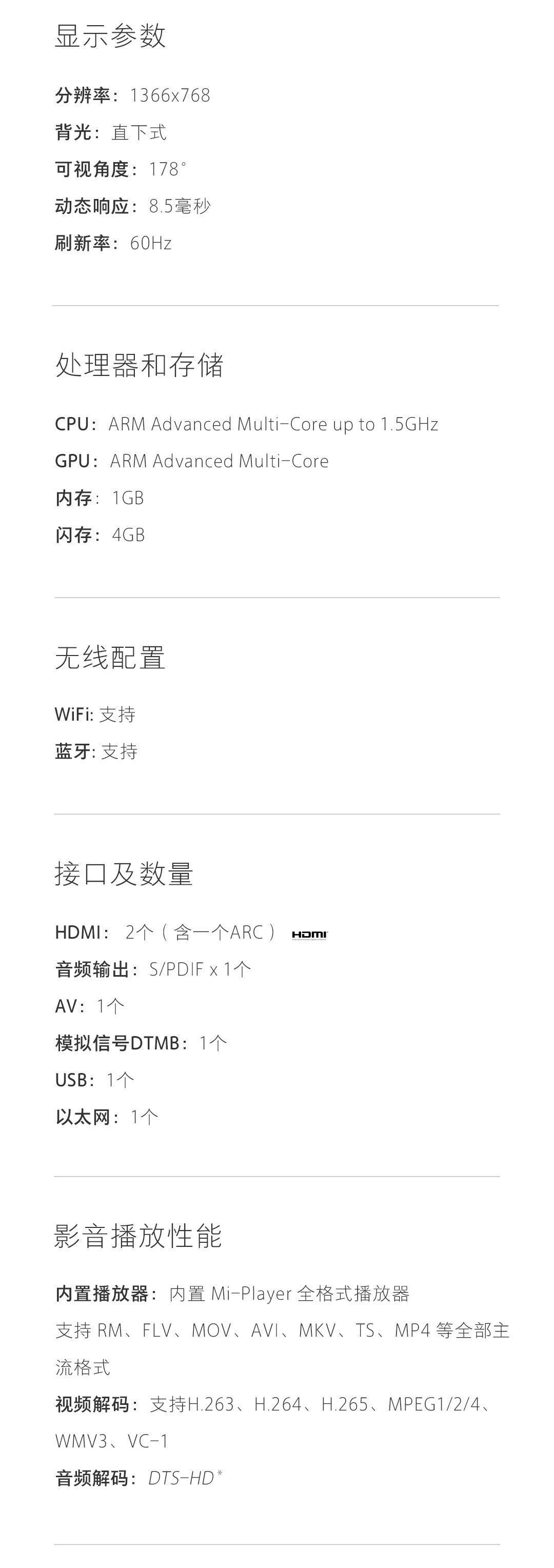 小米(MI)テレビ4 S 32リンチーハイビショップネル4 S 32リン液晶スモック液晶スポーツトレーライト1 G+4 G Bluetooth Limonk小米4 S 32リンチー