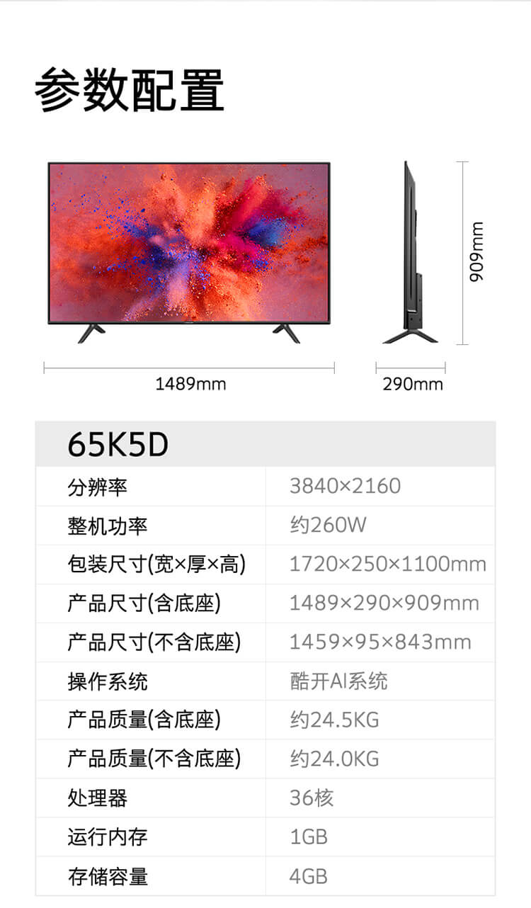 65寸の大きさが大きくて、枠も広くないです。ちょっと厚いです。薄さで完璧です。