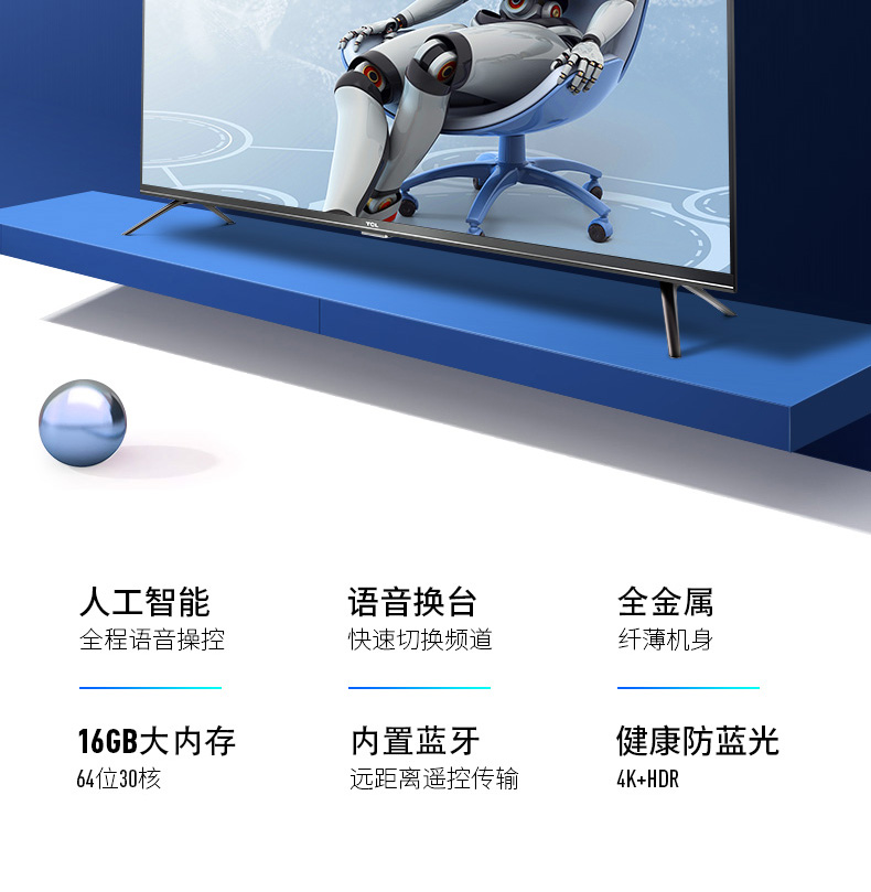 TCL 50インチー4 K全金属薄型高精細人スマット液晶大テル人工知能テレビ银河灰公式