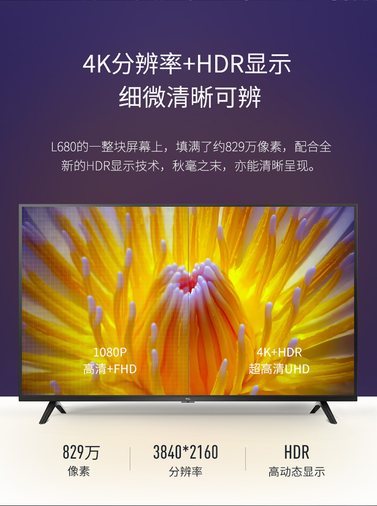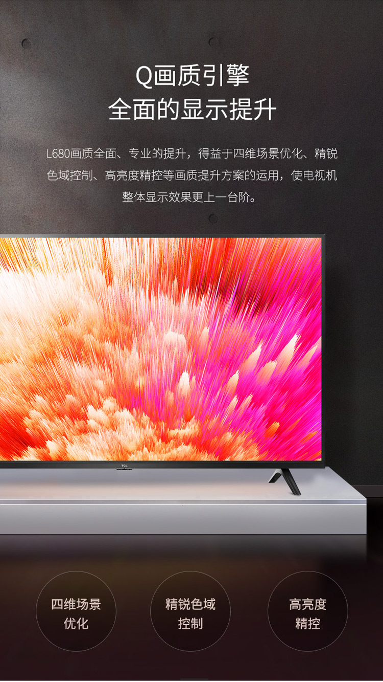 TCL 65 L 680インチ高画质4 Kフルハウスハイビジョンビジョンビジョンビジョン液晶テレビ豊富映像资源自営(黒)